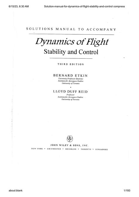 Reading Online DYNAMICS OF FLIGHT STABILITY AND CONTROL SOLUTION MANUAL Doc Library Genesis